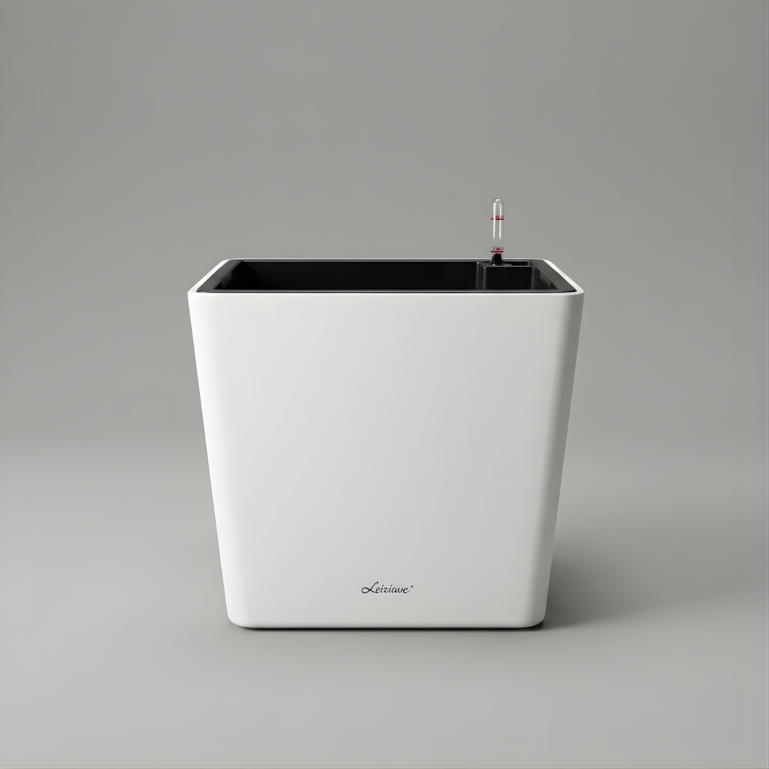 حوض مربع ذاتي الري، مقاس 33.5×28×33 سم و39.5×34×37 سم، لون أبيض كريمي وأسود مع دلو داخلي